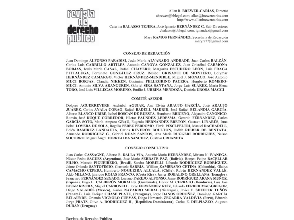 En primer lugar, a partir de este número, formo parte del Comité Asesor de la Revista, cuestión que era impensable para mí, no solo cuando utilicé millones de veces sus publicaciones para estudiar e incluso ejercer, también cuando comenzaron a publicar en ella mis trabajos, hace más de diez años. Agradezco enormemente a los Drs. Brewer-Carías, Mary Ramos y Víctor Hernández-Mendible por hacerme parte de un foro tan importante y prestigioso.