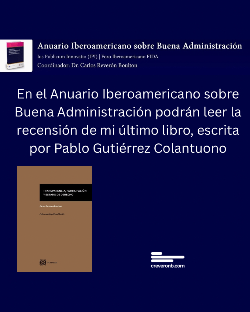 - Recensión. Podrán leer la recensión de mi último libro, en el Anuario Iberoamericano sobre Buena Administración escrita por Pablo Gutiérrez Colantuono. Intitulada ¿Porqué sugerir la lectura del último libro de Carlos Reverón Boulton? 👉 https://ijeditores.com/pop.php?option=articulo&Hash=a82353e54c8970e8472cd9db2aa799a7